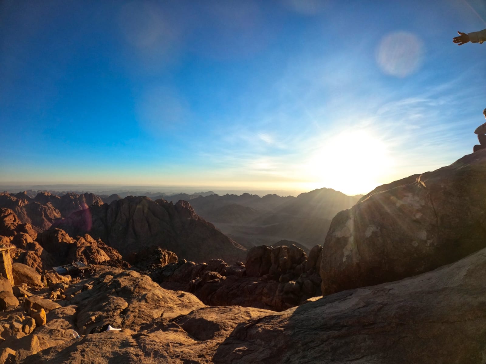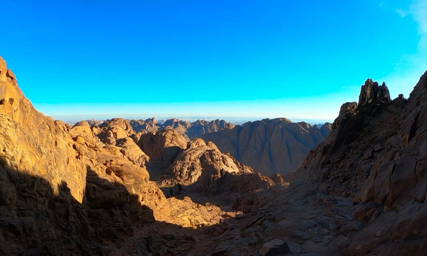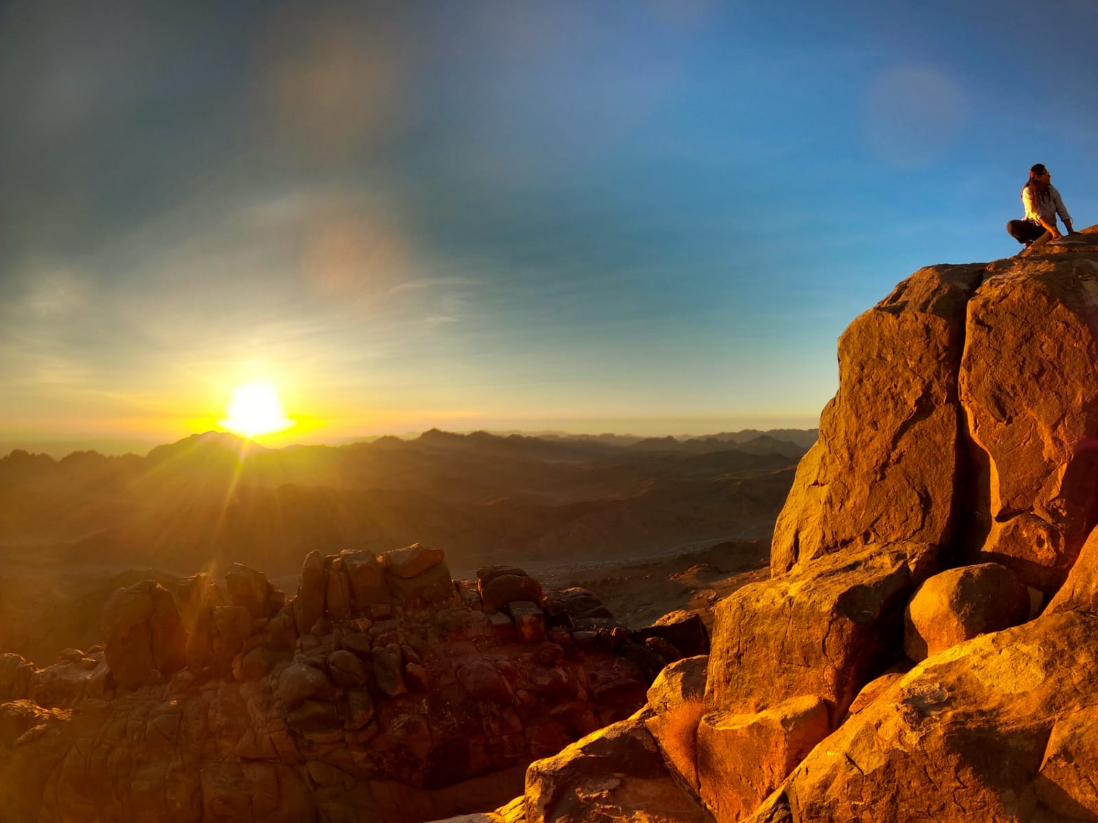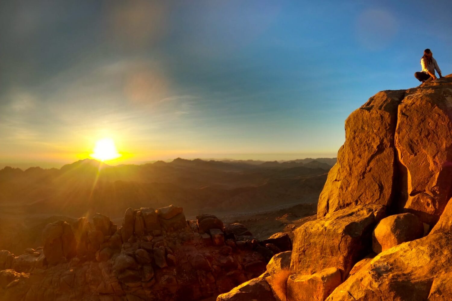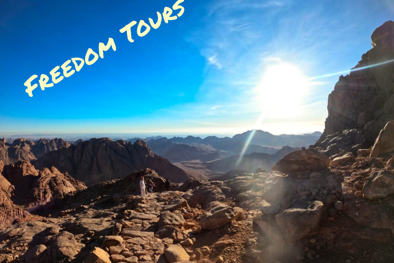 En atteignant le sommet, vous pourrez admirer le magnifique lever du soleil sur les montagnes et le désert entourant le Mont Sinaï, une expérience unique et l’un des meilleurs levers du soleil que vous aurez jamais vu.
